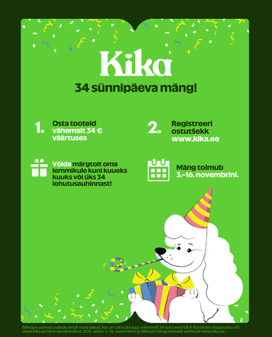 või posti teel, võta meiega ühendust telefonil +372 609 0461 või e-posti aadressil klienditeave@kika.ee,