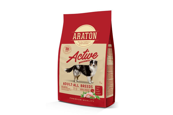 ARATON täistoit kodulinnulihaga on usaldusväärne valik aktiivsetele koertele, kes vajavad rohkem energiat; loodud tõeliste vajaduste järgi – kui koer liigub rohkem, viibib kauem õues või elab aktiivset eluviisi.