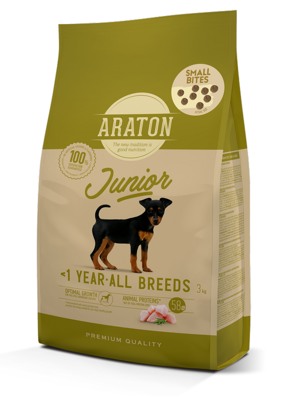 ARATON täissööt kanaga on turvaline, selge ja tasakaalustatud valik kõikide tõugude kutsikatele alates 2. elukuust. Välja töötatud kasvava organismi vajadusi silmas pidades: hea valgude omastamine, stabiilne areng, tugevnev immuunsus ja terve seedimine. See on toit, mis aitab kutsikal loomulikult kasvada – ilma liigsete lisanditeta, kuid sisaldades kõike vajalikku igapäevaseks toitumiseks. Peamine valguallikas – kuivatatud linnuliha ja maks – on hästi seeditav, maitsev ja sobib ka kõige tundlikumatele kutsikatele. Kaltsiumi ja fosfori lisamine toetab tugevate hammaste ja luude arengut, samas kui A- ja E-vitamiin, seleen ja tsink tugevdavad immuunsust, nägemist ja looduslikku kaitset oksüdatiivse stressi vastu. Kiudained ja peedimass toimivad prebiootikumidena seedimise toetamiseks. Need aitavad säilitada soolestiku mikrofloorat ja õiget väljaheite konsistentsi – mis on kutsika arengus väga oluline. Tüümiani, salvei, peterselli ja pune lisamine muudab toidu maosõbralikuks, tugevdab organismi ja lisab igapäevasele menüüle väärtust. ARATONi retseptid on koostatud koostöös loomatoitumise ekspertidega. See toit ei ole loodud moesuundade järgi, vaid tõeliste vajaduste põhjal – neile, kes soovivad anda oma kutsikale tervisliku alguse kasvamiseks, ilma kunstlike maitsete, värvainete või raskete koostisosadeta. Nagu vastutustundlikud loomasõbrad ütlevad: „Kõige tähtsam on, et toit toimiks – mitte ainult teoorias, vaid ka kutsika igapäevaelus.“ ARATONi valivad need, kes väärtustavad tulemusi – läikiv karv, hea väljaheite konsistents ja aktiivne, rõõmus kutsikas. ARATON on valmistatud Leedus vastavalt kõrgetele kvaliteedistandarditele. See on KIKA pereettevõtte toode – loodud armastuse, teadmiste ja vastutustundega, et hea toitumine oleks sinu lemmiku elu uus algus. Iga päev.Soodustab sujuvat kasvu ja lihaste arengut