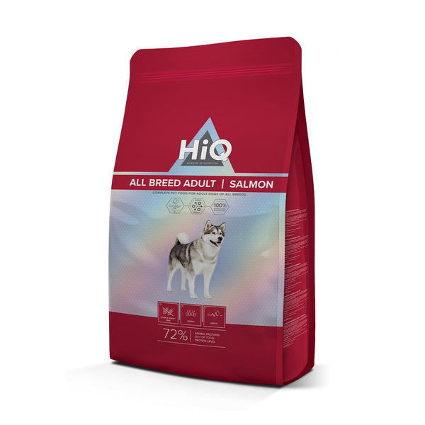 HIQ All Breed Adult Salmon on täisväärtuslik kuivtoit, mis on loodud igapäevaseks toitumiseks täiskasvanud koertele kõikidest tõugudest. Valemis on kasutatud 35% lõhet – õrn, kõrge väärtusega loomse valgu allikas, sobib hästi isegi tundlikumatele koertele.