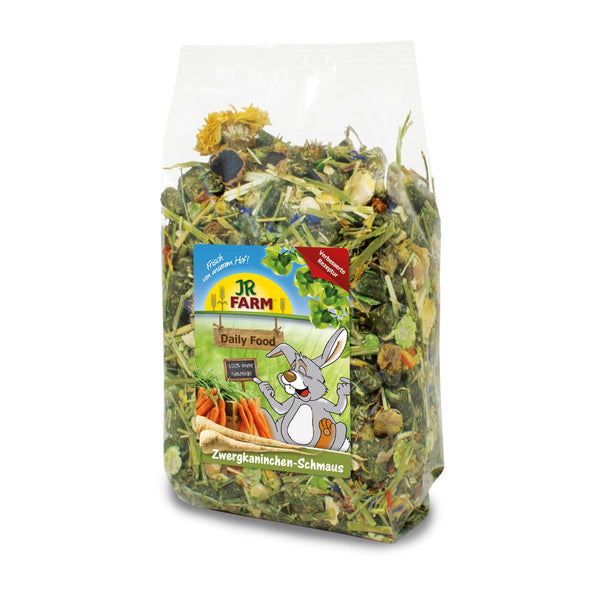 JR Farm Dwarf Rabbits Feast on ainulaadse koostisega kvaliteetne kääbusküülikutoit. Tasakaalustatud täisväärtuslik toit koosneb naturaalsetest toiduainetest: mitmesugusest rohust, rohttaimedest ja aedviljast. Täisväärtuslik ja maitseküllane tasakaalustatud toidusegu on hea valik lemmiklooma igapäevaseks toitmiseks. Toit ei sisalda teravilja, seega sobib see ideaalselt teravilja suhtes allergilistele ja sellistele närilistele, kelle kehakaalu tuleb jälgida.