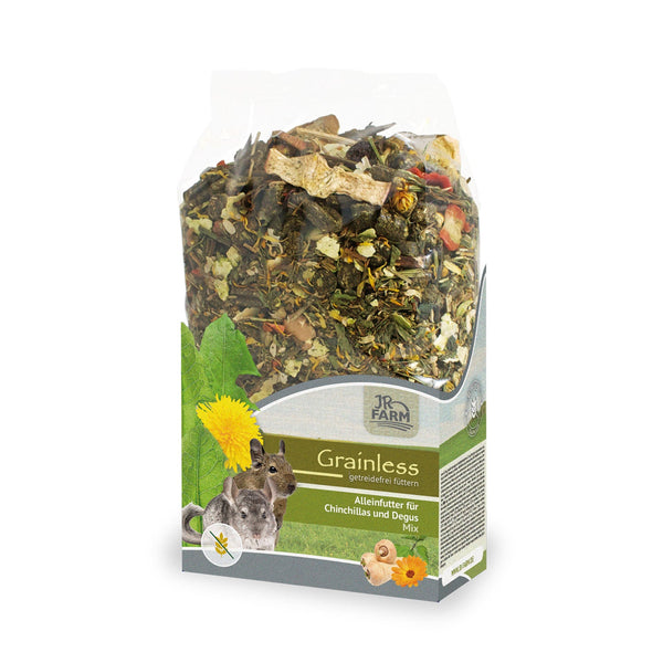 JR Farm Grainless Mix on kõrgekvaliteetne täisväärtuslik teraviljavaba tšintšiljatoit. Segu koostises on ainult looduslikud ained: erinevad taimed, hein ja kuivatatud köögiviljad. Erimaitseline täisväärtuslik tasakaalustatud toitesegu on suurepärane valik lemmiklooma igapäevaseks toiduks. Selles toidus on rohkesti kiudaineid, kuid puuduvad teraviljad, seetõttu sobib see ideaalselt närilistele, kelle puhul tuleb jälgida kehakaalu, samuti ka neile, kes on allergilised teraviljale.