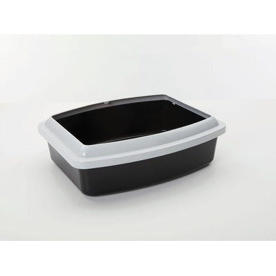 Ristkülikukujuline kaitseraamiga avatud kassitualett.