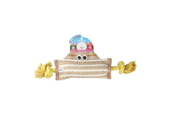 See väike, kuid ülimalt vastupidav mänguasi on loodud aktiivseks tirimiseks. Külgmised köied muudavad selle mugavaks nii koera kui omaniku jaoks – suurepärane treeninguks ja koostööks. Džuuti kasutatakse isegi politseikoerte treeningutes, sest see on loomulikult vastupidav materjal.