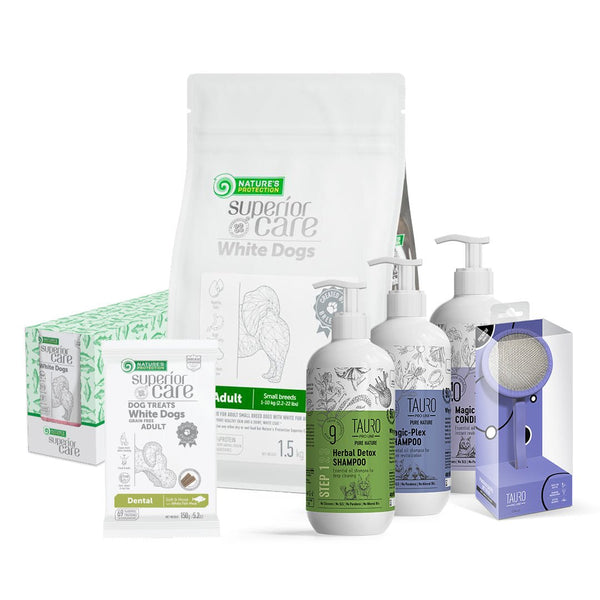 Mažų ir labai mažų baltakailių šunų produktų rinkinys