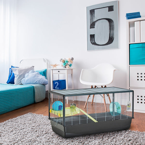 Lemmiklooma kasvuks vajalike erinevate tarvikutega Hamster Plaza hamsterpuur.