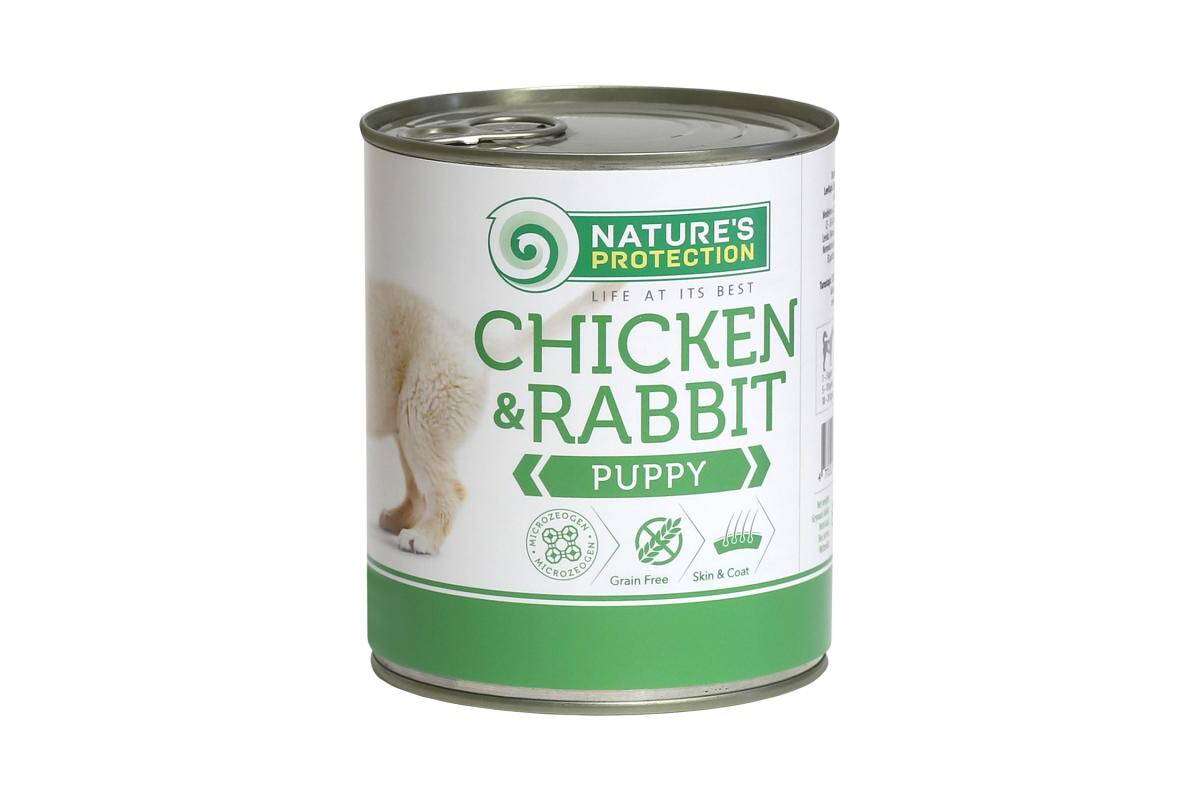Märgtoit kutsikatele – loodusliku kana- ja küülikuliha tükid mineraalidega õrnas puljongis.
