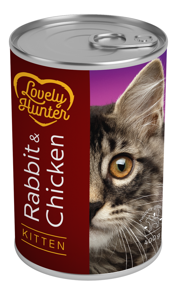 LOVELY HUNTER Kitten Rabbit & Chicken on kvaliteetne konservtoit küüliku- ja kanalihaga kuni 1-aastastele kassipoegadele.