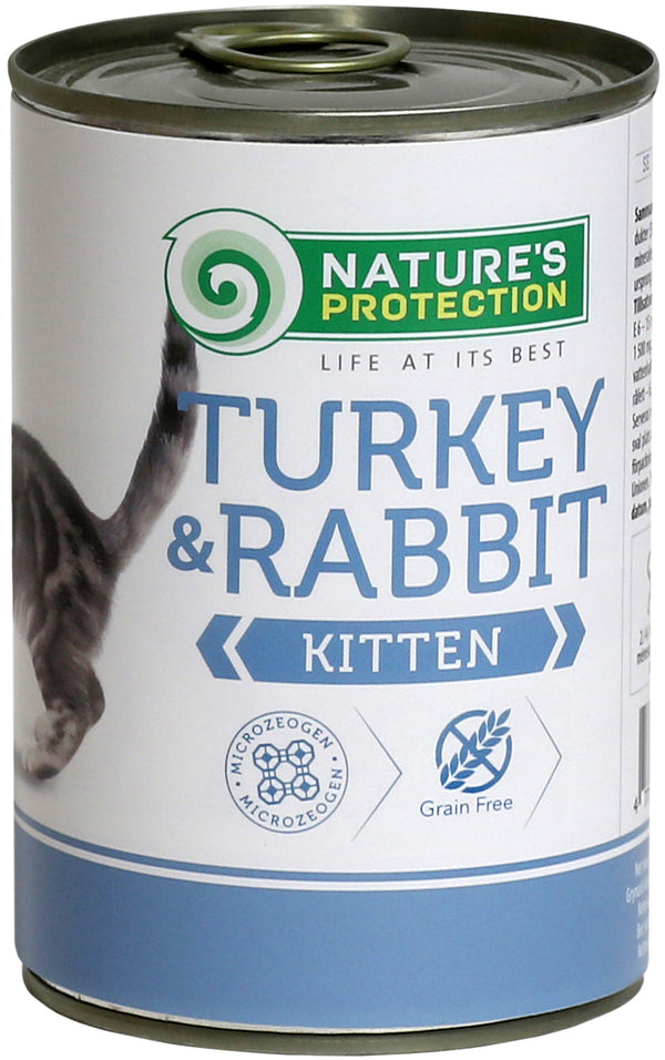 Kitten Turkey & Rabbit sisaldab puljongis kalkuni ja küülikuliha tükke, mis on rikastatud mineraalidega. Toidul on kõrge lihasisaldus, kuid loomset rasva on kasutatud mõõdukalt. Konserv sobib kana suhtes allergilistele kassipoegadele.