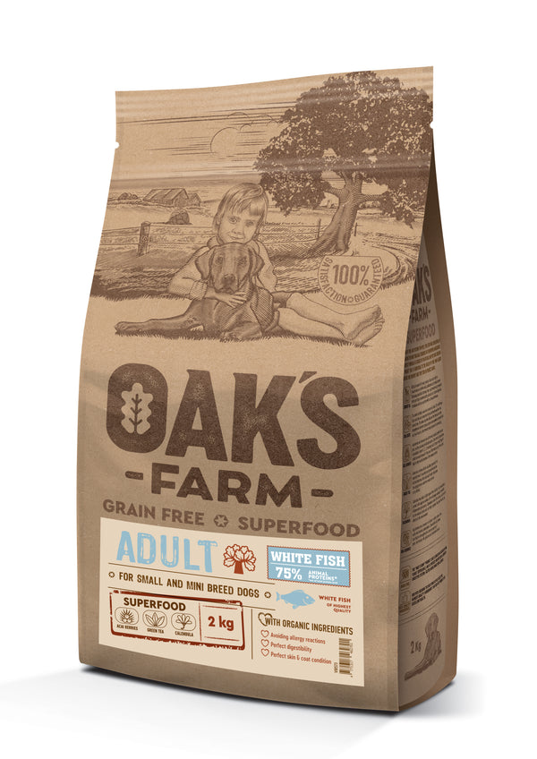 Oak's Farm Teraviljavaba täissööt valge kalaga väikestele ja väga väikestele täiskasvanud koertele