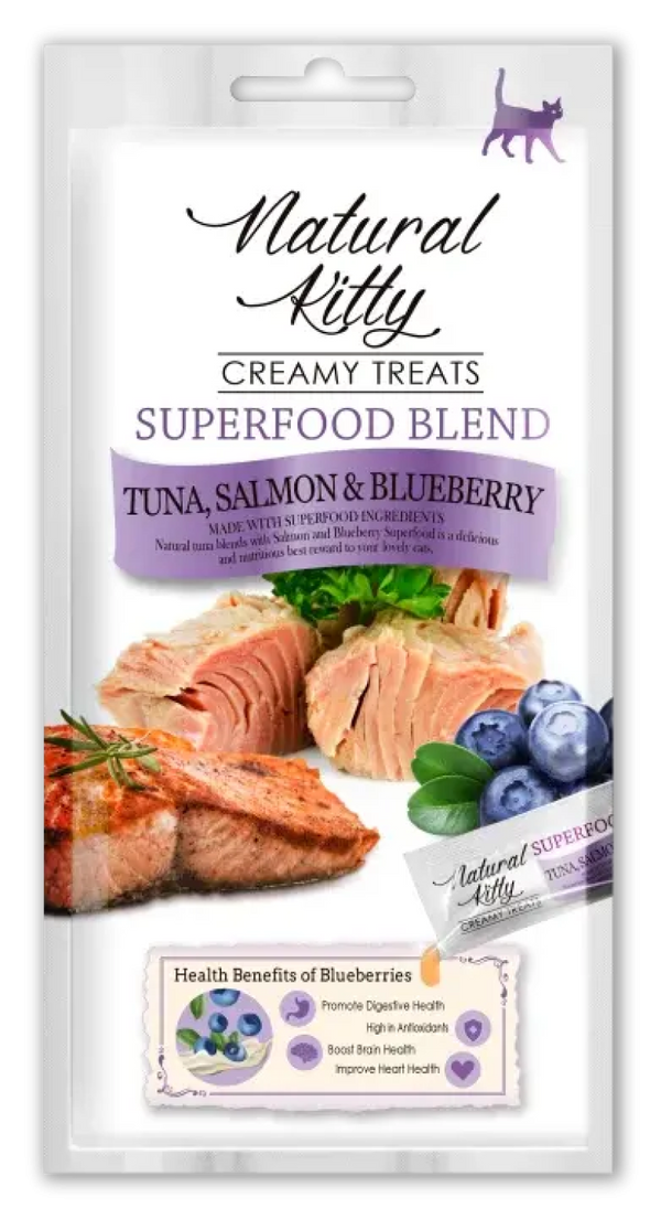 Natural Kitty Söödav materjal kassidele - kreemjas maiuspala tuunikala, lõhe ja mustikatega