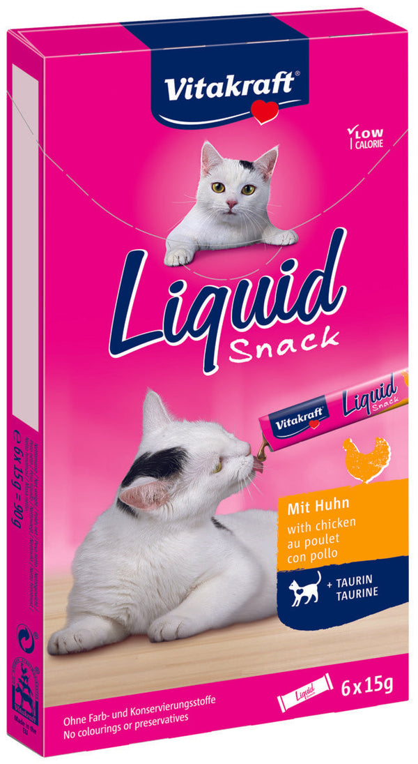 Vitakraft Liquid Snack – spetsiaalselt kassidele mõeldud vedelad maiused kanaliha ja tauriiniga.