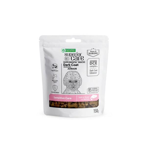 Nature's Protection Superior Care Dark Coat maiused – kõrgeima kvaliteediga, naturaalsed, teraviljavabad maiused, mis on loodud spetsiaalselt noortele, tumeda karvkattega, igat tõugu koertele. Need maiused ei sisalda kunstlikke värvaineid, säilitusaineid ega maitsetugevdajaid ning sisaldavad vaid hoolikalt valitud ning kasulikke lemmiklooma organismile koostisosi.