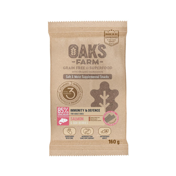OAK’S FARM Immunity & Defence lõhega on mitte ainult maitsev maiustus, vaid ka igapäevane tervisebooster teie koerale, mõeldud immuunsuse tugevdamiseks ja üldise elujõu säilitamiseks.