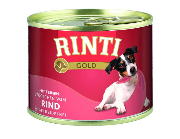 Kõrgekvaliteediline veiselihakonserv RINTI GOLD täiskasvanud koertele.