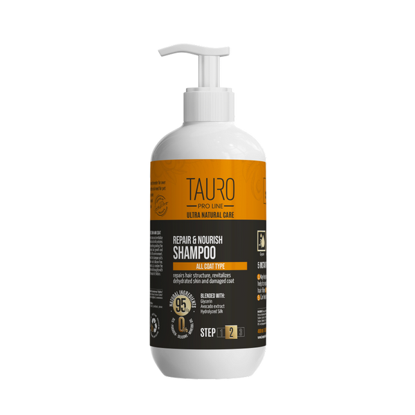 Tauro Pro Line Ultra natural care karvkatet ja nahka taastav ja toitev šampoon koertele ja kassidele