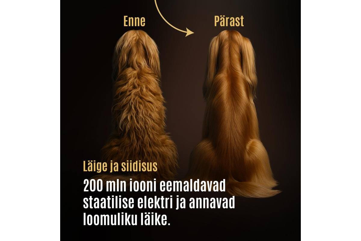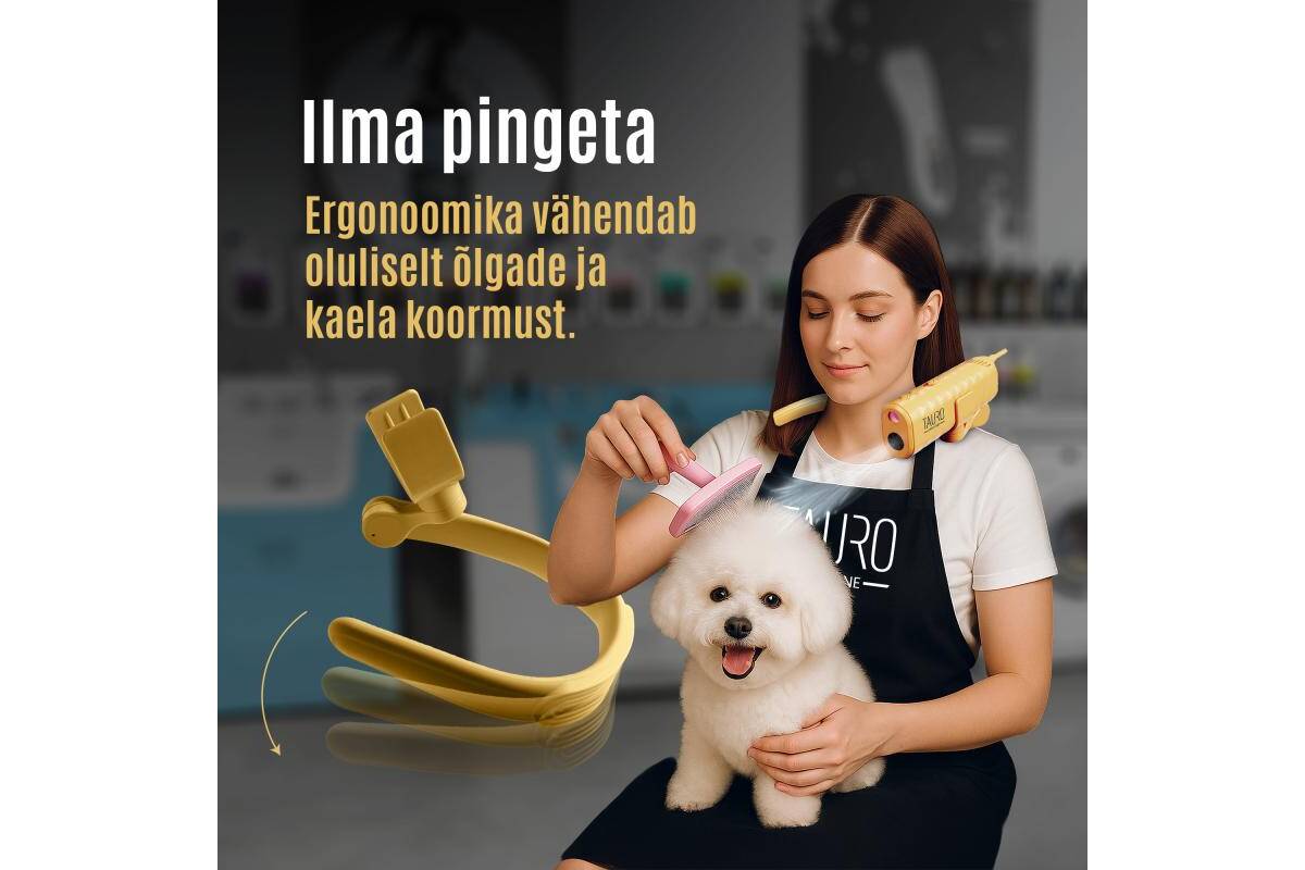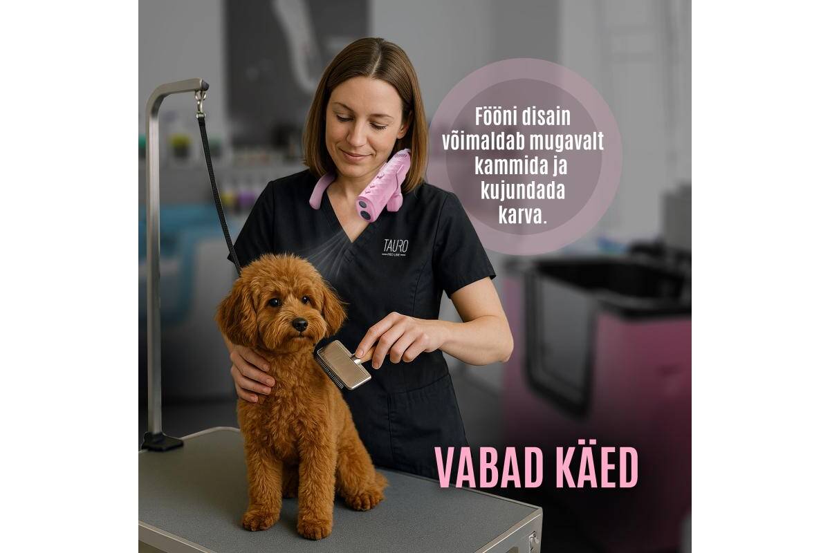 Kaelale kinnitatav disain võimaldab kuivatada lemmiku karva käed vabaks jättes – maksimaalne mugavus ja tõhusus.