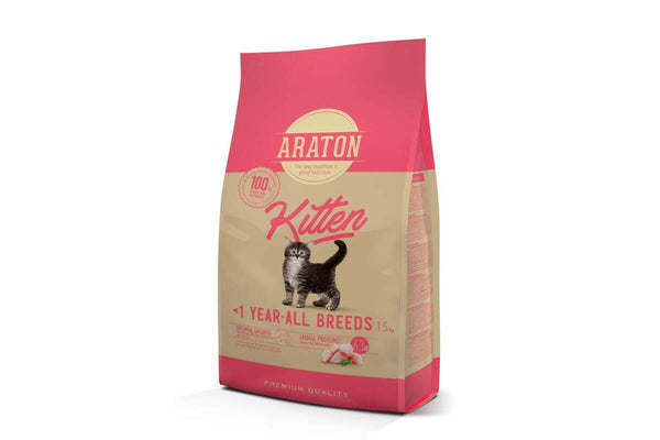 "Araton" on kodulindudega täissööt kassipoegadele. Toit on valmistatud kvaliteetsest toorainest, et kontrollida hambakatu ja kivide teket kassi hammastel. See sisaldab kõiki vajalikke toitaineid ja vitamiine, mis võivad hoida lemmiklooma head tervist.