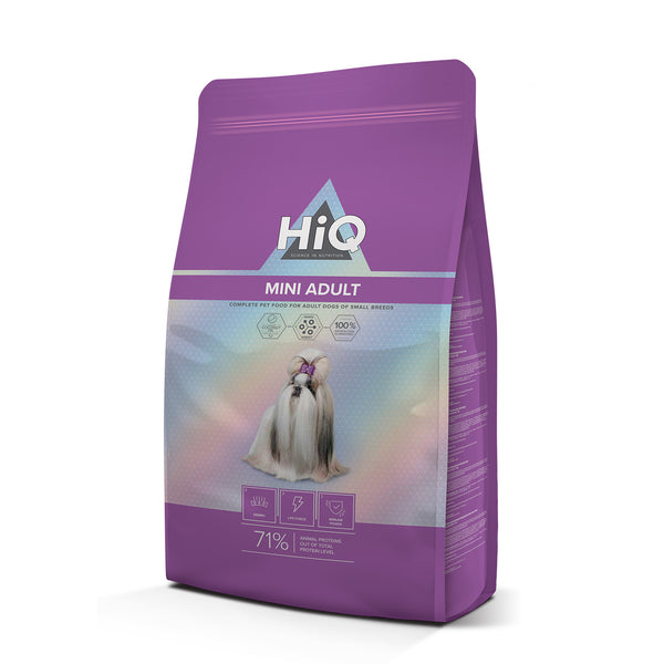 HIQ Mini Adult – полнорационный сухой корм, специально разработанный для взрослых собак мелких пород (1–10 кг), чьи пищевые потребности характеризуются ускоренным обменом веществ, чувствительным пищеварением и потребностью в концентрированной энергии. Благодаря сбалансированному составу и высокой биологической ценности он отлично подходит для ежедневного кормления. Рецептура основана на 42% мяса птицы – легкоусвояемом источнике белка, способствующем поддержанию мышечной массы. Корм обогащен рыбной мукой, кокосовым маслом, льняным семенем и яйцами для полноценного питания и поддержания здоровья кожи и шерсти. Добавленный динамически микронизированный клиноптилолит (MZG) действует как компонент «NanoAgent», помогая улучшить усвоение питательных веществ и поддерживая здоровое пищеварение. Рыбий жир и льняное семя являются источниками жирных кислот омега-3 и омега-6, которые способствуют поддержанию блеска шерсти, здоровья кожи и уменьшению воспалительных процессов. Цинк, витамин Е и селен укрепляют иммунную систему и защищают клетки от окислительного стресса. Витамины группы B (B1, B6, B12, ниацин, фолиевая кислота, биотин) поддерживают нервную систему, энергетический обмен веществ и состояние шерсти. Не содержит ГМО, добавленного сахара и синтетических отдушек. Корм для домашних животных HIQ создан на основе многолетнего практического опыта в сотрудничестве с владельцами собак и диетологами. Каждый рецепт основан на том, что работает не только в теории, но и в повседневной жизни животного – как в миске, так и для его благополучия. Наша цель – предоставить полноценный, четко сформулированный рацион, основанный на натуральных ингредиентах и реальных результатах. HIQ производится в Литве на семейном предприятии KIKA, где уже более 35 лет все внимание уделяется домашним животным – от любви и ежедневного ухода до инновационного производства.42% linnuliha – peamine loomse valgu allikas, mis aitab säilitada lihasmassi ja aktiivsust.
