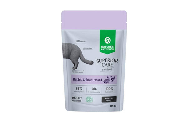Nature's Protection Superior Care Беззерновой влажный корм для взрослых стерилизованных кошек всех пород, с крольчатиной, курятиной и клюквой