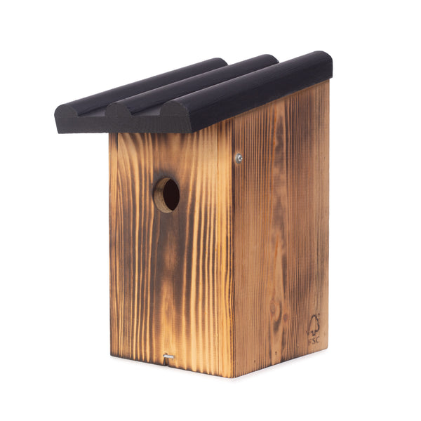 Деревянный скворечник «Томи» предназначен для различных видов синиц, мухоловок, воробьев, дятлов, которые ищут пищу или просто хотят иметь место для отдыха.