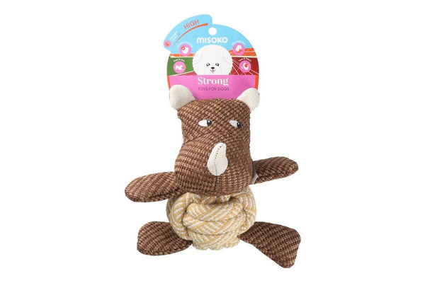 Детали из веревок, фактурная ткань и стильный дизайн с изображением животных делают эту игрушку долговечной и фотогеничной.