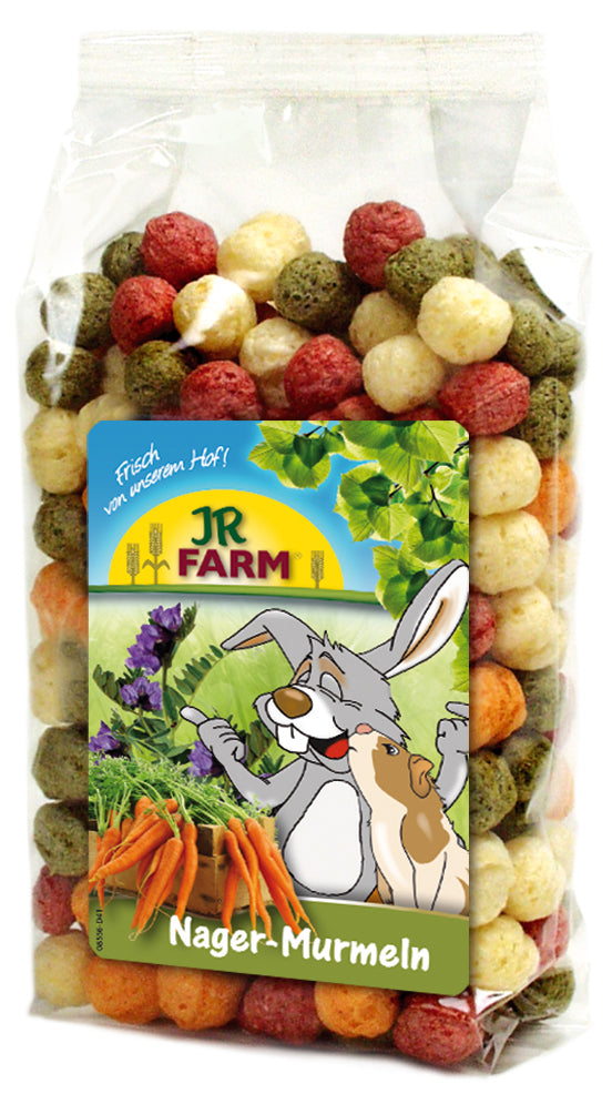Шарики для грызунов JR Farm — это хрустящие цветные шарики из кукурузы и овощей. Шарики разных цветов имеют разные вкусы: оранжевые шарики сделаны из моркови, красные — из свёклы, зелёные — из люцерны, а жёлтые — из кукурузы. Эта красочная добавка подходит для кроликов, морских свинок, крыс, хомяков, мышей и лесных мышей. Обогатите рацион своего питомца этой специальной натуральной добавкой.