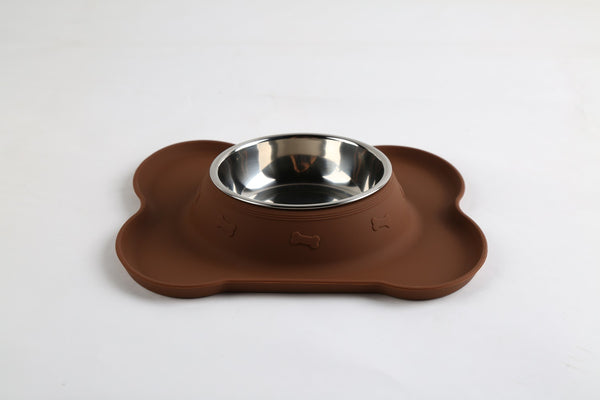 миска для домашних животных, двойная, с силиконовым основанием в форме косточки, коричневая